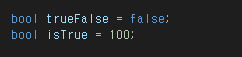 bool은 참과 거짓을 다루는 전용 자료형이다. 사이즈는 1byte이지만 bool 타입은 0과 1만 받아들인다.