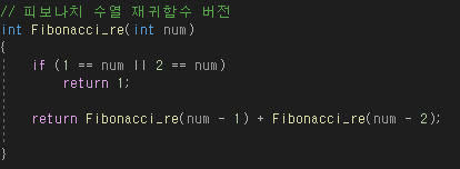 int main() 안에서는 Fibonacci(원하는 숫자)를 넣어 함수에 num 값으로 받았다.