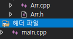 <Arr.cpp>에서는 #include로 Arr.h를 받아 실질적 함수 구현을 해두었다.