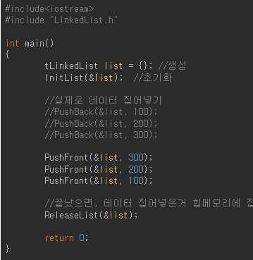 이전 링크드 리스트. c 포스팅에서 main 부분이다.