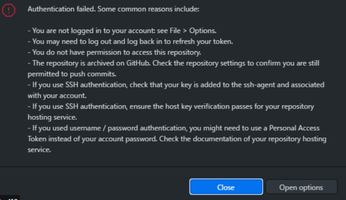 [깃허브 데스크톱 에러] Authentication failed. Some common reasons include: