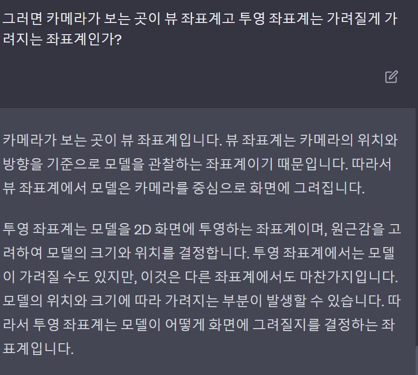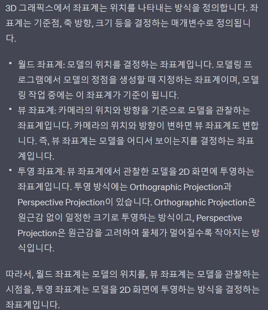 ChatGPT랑 대화하면서 좌표계에 대해 헷갈렸던 부분들을 이해할 수 있었다.